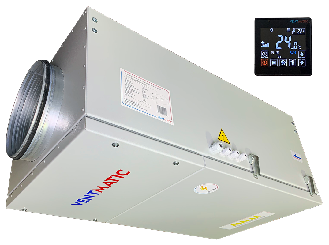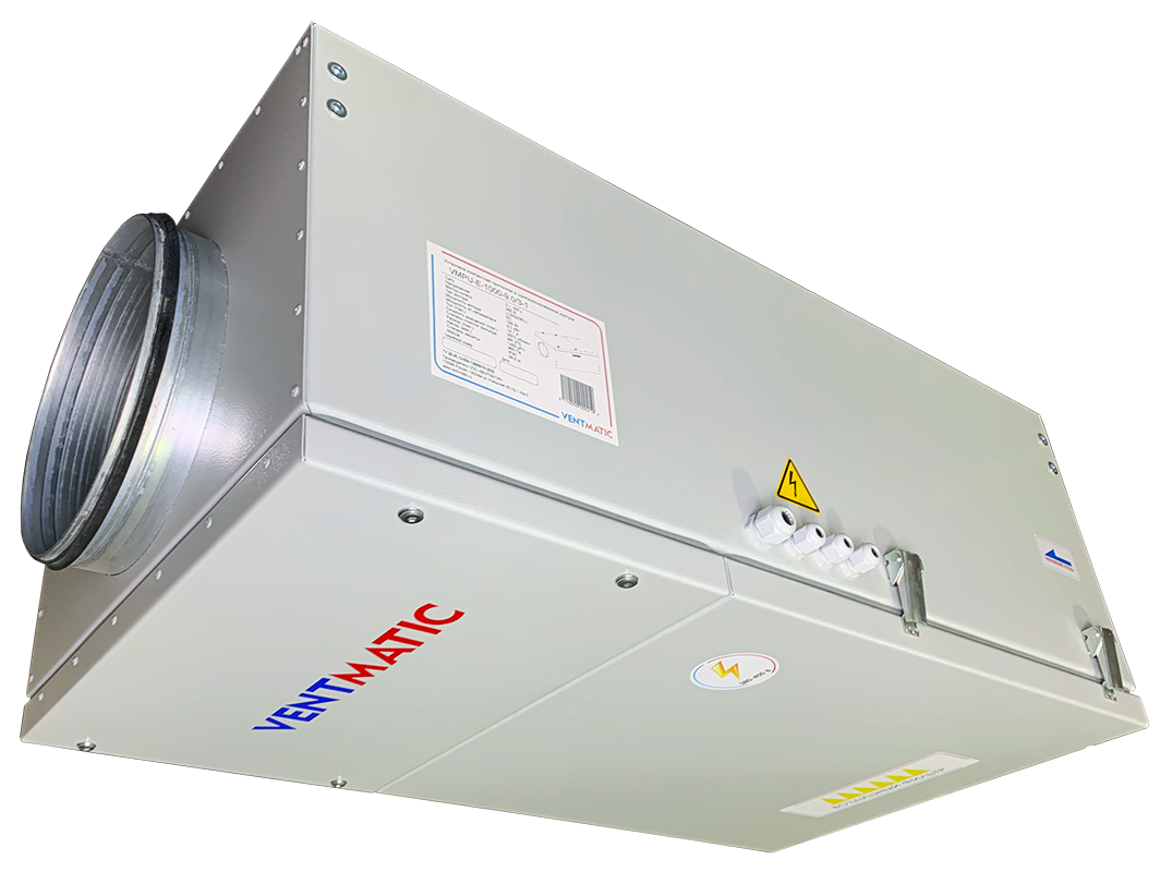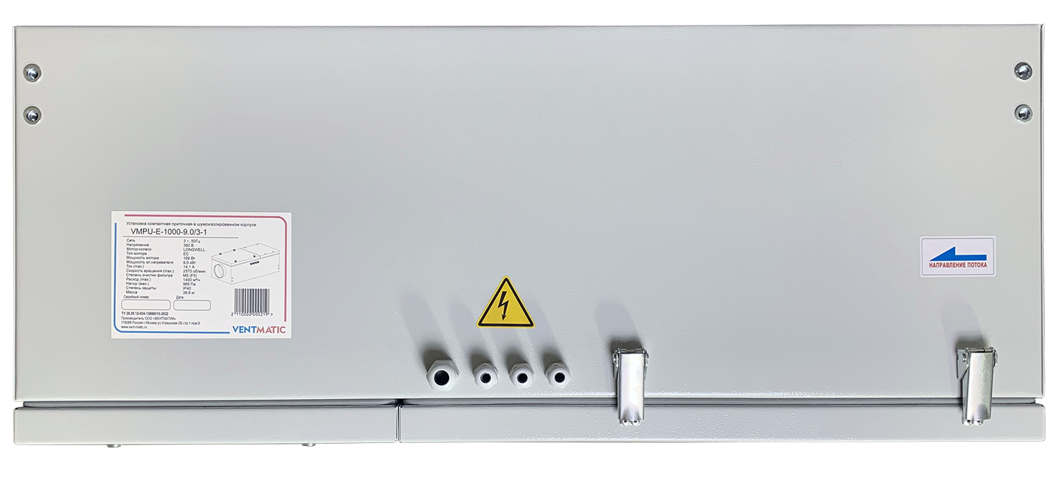 Серия VMPU-E-1 приточных установок с электрическим нагревом в шумоизолированном корпусе VENTMATIC представлена в 5 типоразмерах: