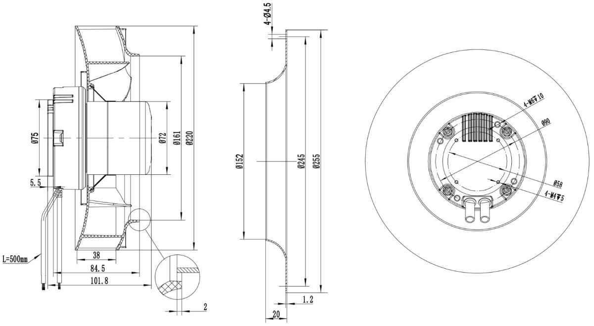 Плавный пуск Время разгона <7 секунд до полной скорости Электромагнитное излучение Электромагнитное излучение в соответствии с положениями GB9254 ТЕХНИЧЕСКИЙ ЧЕРТЕЖ