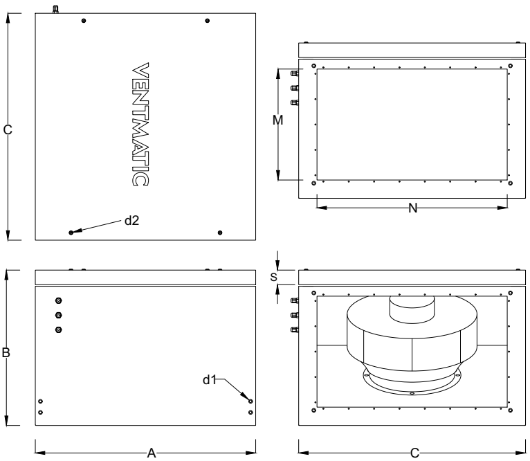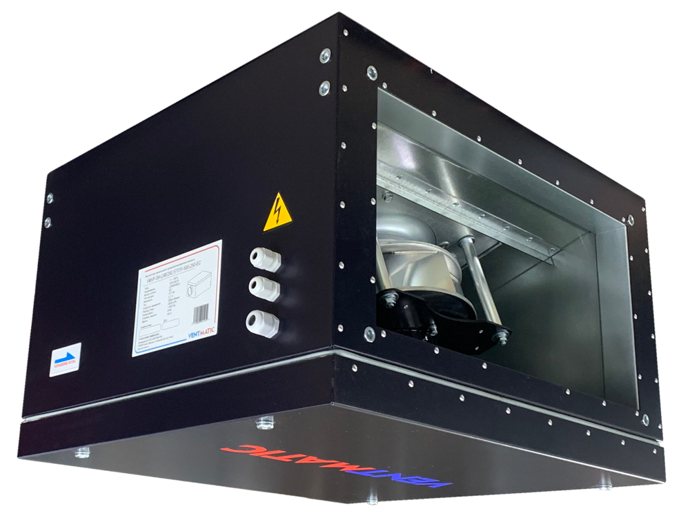 Линейка тихих шумоизолированных вентиляторов серии VMVP-SH-EC прямоугольного сечения состоит из 11-ти типоразмеров: