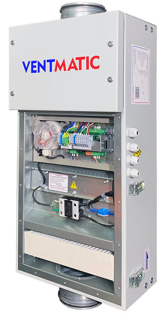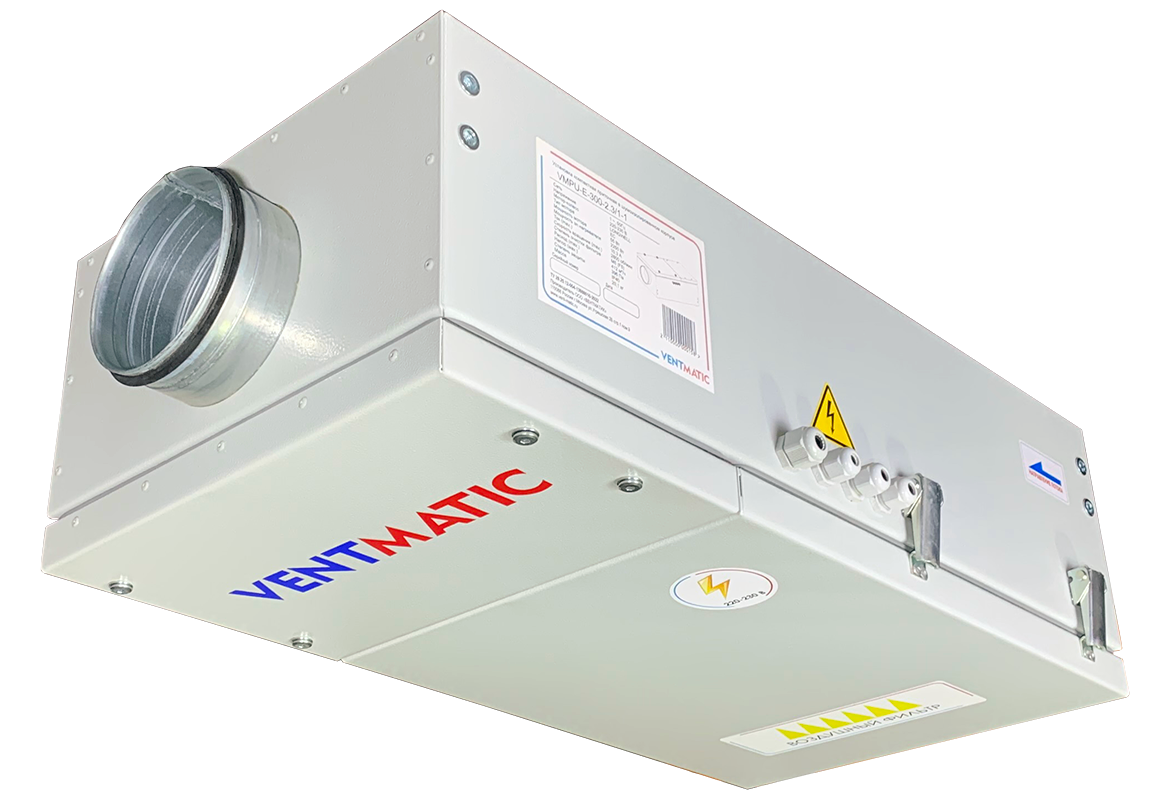 Серия VMPU-E-1 приточных установок с электрическим нагревом в шумоизолированном корпусе VENTMATIC представлена в 5 типоразмерах: